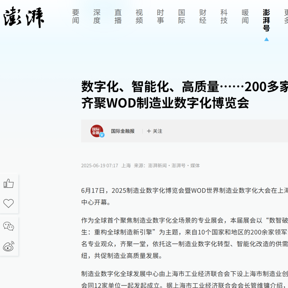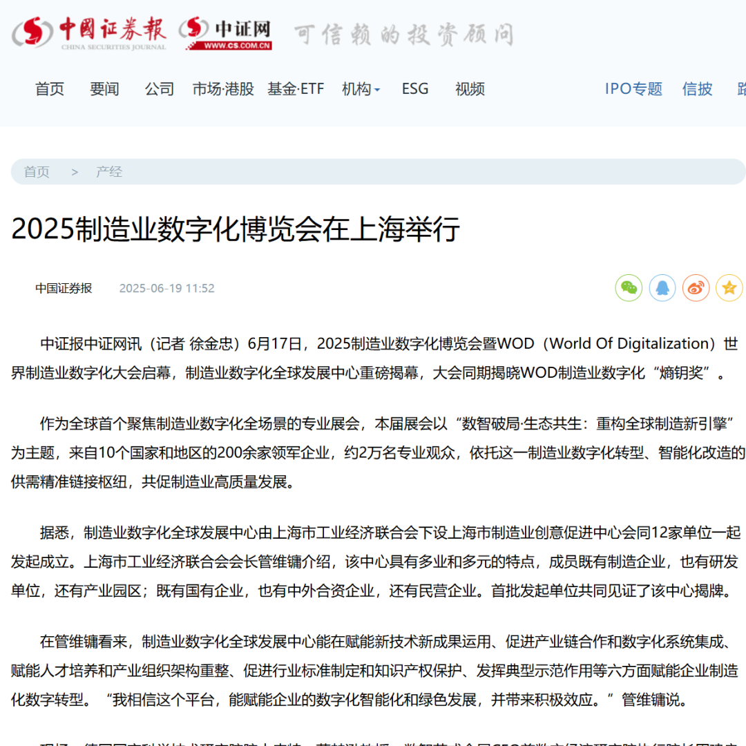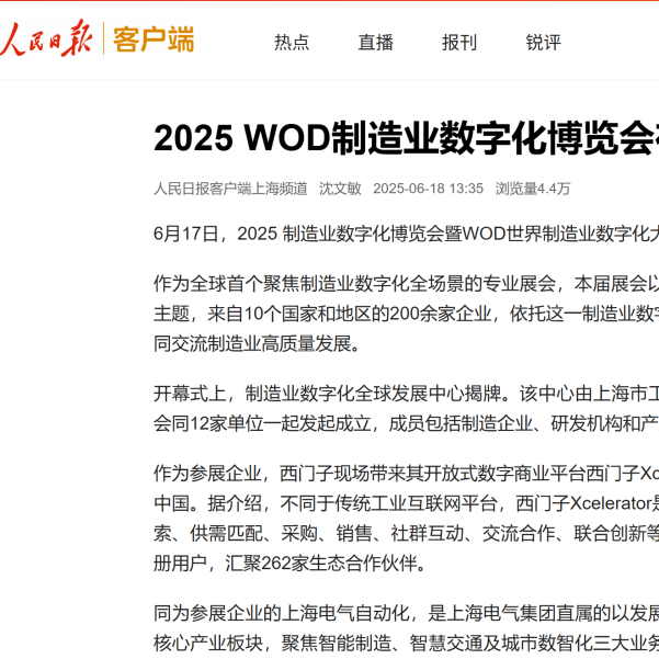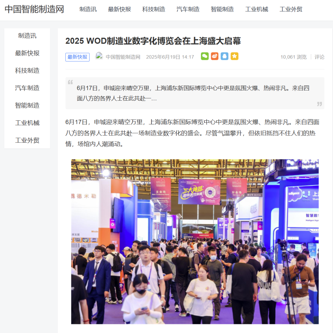 本次展会构建了覆盖 “大众门户 + 行业垂直 + 移动端” 的三维媒体传播体系,超 200家媒体参与报道,总阅读量突破1000万次,实现从中央级媒体到细分领域平台的全域覆盖。对于参展商而言,这一媒体计划不仅通过中央电视台CCTV、人民日报、CGTN、新华社(新华财经)、央广网、中国日报网、中国新闻网、解放日报(上观新闻)、解放日报、澎湃新闻、中国青年报、中国网、环球网、文汇报、新民晚报、新闻晨报、SHINE、21世纪、潮新闻、交汇点新闻等国家级及省级平台,更借助第一财经、中国证券报、中国智能制造网、中华制造网、环球制造网、中国工业制造网等专业媒体精准触达制造业上下游决策人群,有效扩大技术解决方案与产品的市场声量。此外,展会通过 “熵钥奖” 揭晓、数智化工厂全场景方案展示等内容策划,助力参展商以 “行业标杆” 形象亮相,吸引上百万余名线上专业观众及跨国企业关注,为其创造潜在商业合作机会,同时通过媒体对 “制造业数字化全球发展中心” 等生态平台的深度报道,进一步强化参展商在产业变革中的话语权与影响力,切实将媒体曝光转化为品牌增值与商业拓展的核心动能。