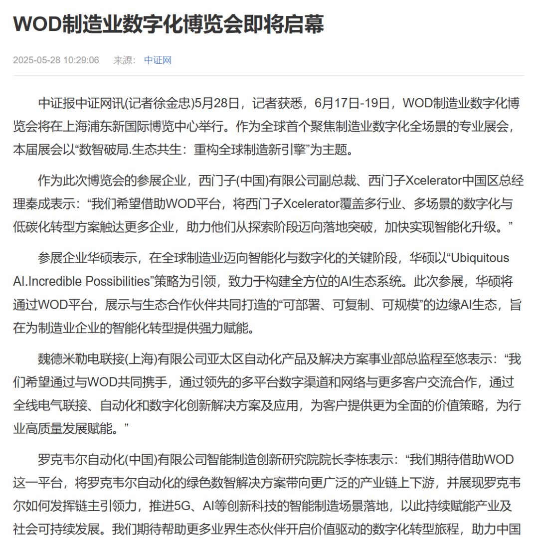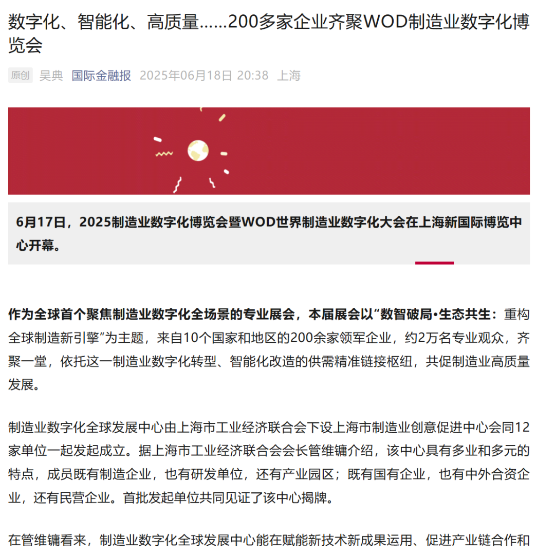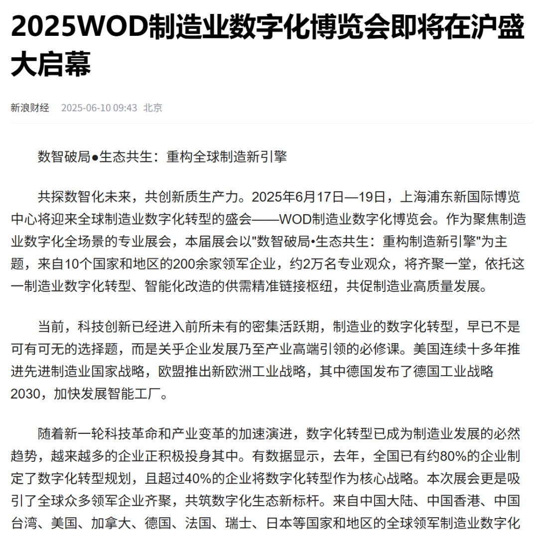 数智破局启新篇・生态共生再启程 ——2025 WOD 制造业数字化博览会(上海)圆满闭幕,11大亮点燃动全球智造新生态