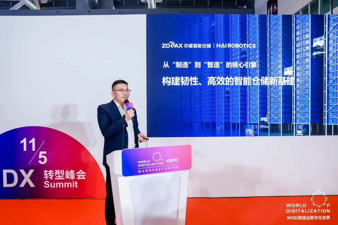 海柔创新省服广东中睿智能科技有限公司副总裁陈海涛先生发表了《从“制造”到“智造”的核心引擎:构建韧性、高效的智能仓储新基建》为主题的分享。