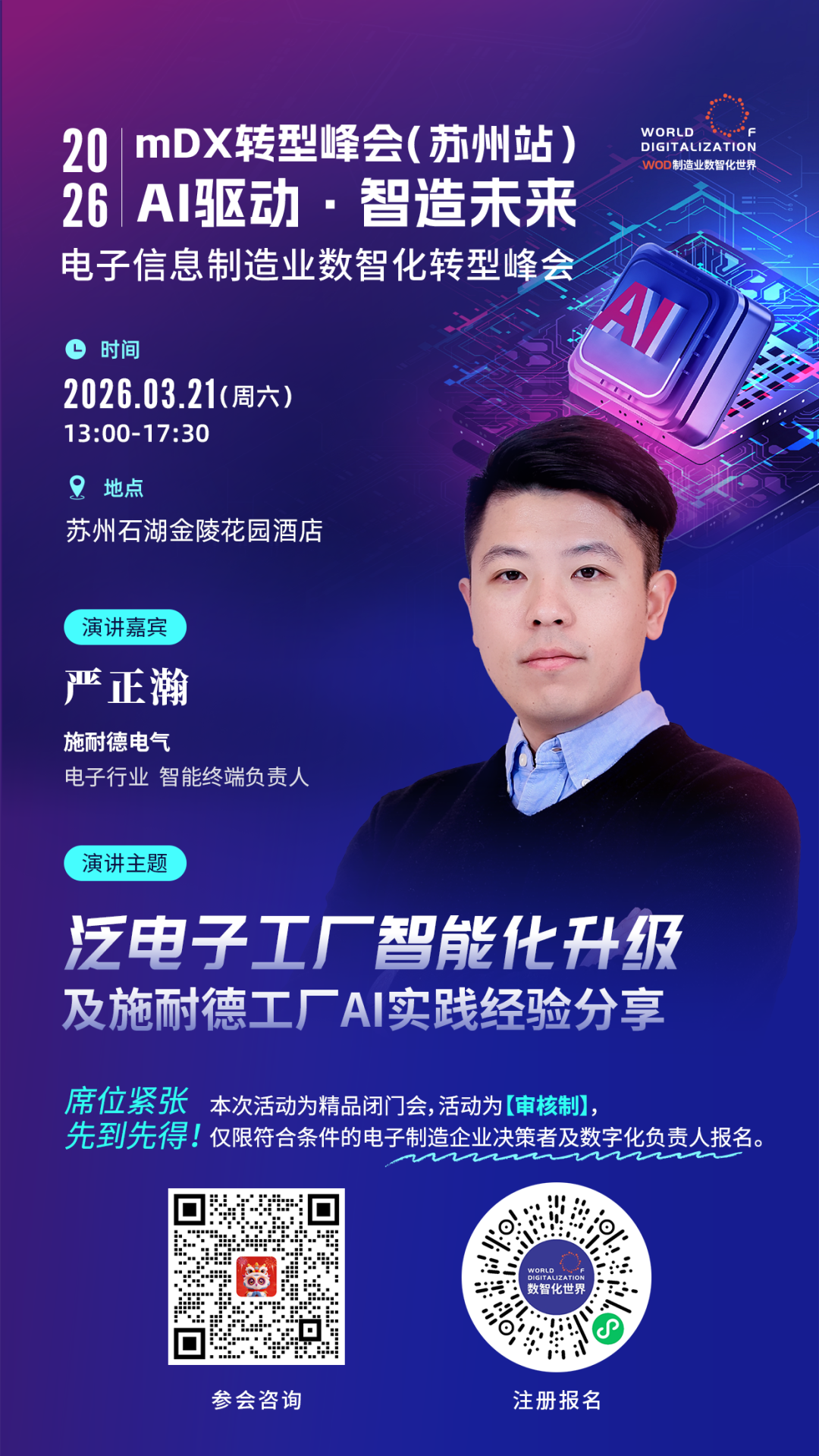 点击阅读第一轮邀请函:【邀请函】相约3月21日苏州!mDX 转型峰会智联产业精英,共探电子制造数智化破局之路